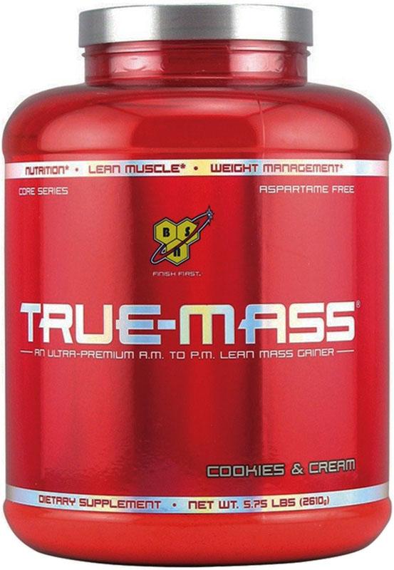 BSN True-Mass считается действительно работающим и лучшим на сегодняшний день гейнером для набора массы. Разрабатывая гейнер True-Mass, компанией BSN был смещен акцент с использования низкокачественных углеводов в сторону сложных (комплексных) углеводов и протеиновой смеси, как дополнительного источника калорий от основных макроэлементов. Поэтому формула True-Mass, представляющая собой сбалансированную смесь, направлена на набор чистой мышечной массы, оставаясь идеальным источником дополнительных калорий. Данный факт, стал сенсацией среди белково-углеводных спортивных добавок.