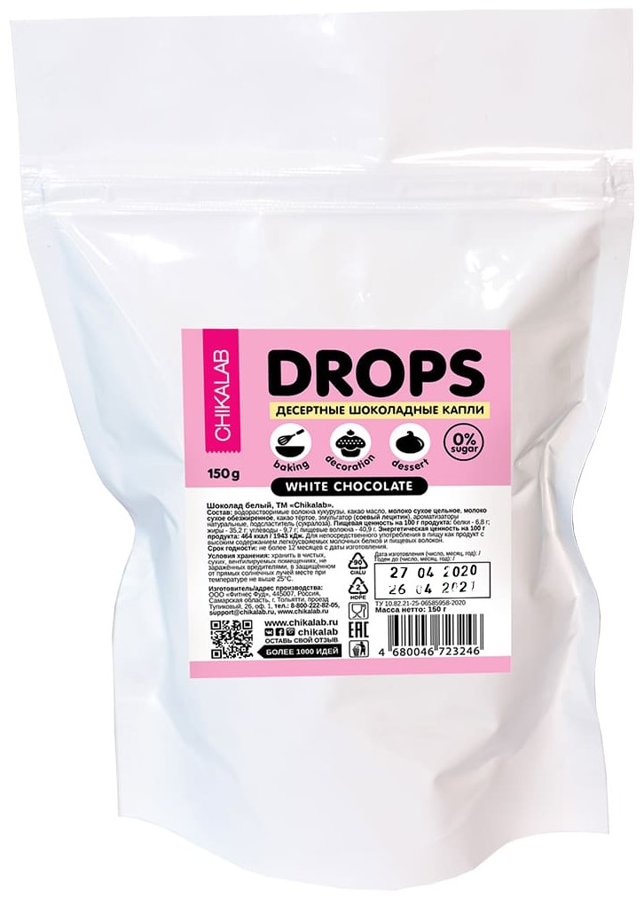 Chikalab DROPS Шоколадные десертные капли 150 грамм