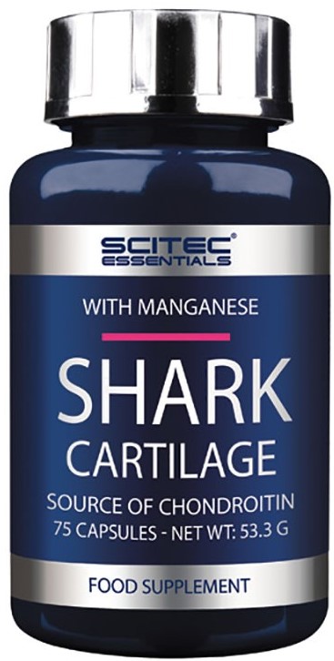 Shark Cartilage от Scitec Nutrition ? препарат на основе акульего хряща - природного источника хондроитина. Он применяется для ускорения восстановления костей при переломах, оздоровления суставов и связок, профилактики псориаза, лечении и профилактики геморроя, для повышении иммунитета. Акулий хрящ в этой добавке максимально очищен для улучшения биодоступности и ускоренного усвоения.
