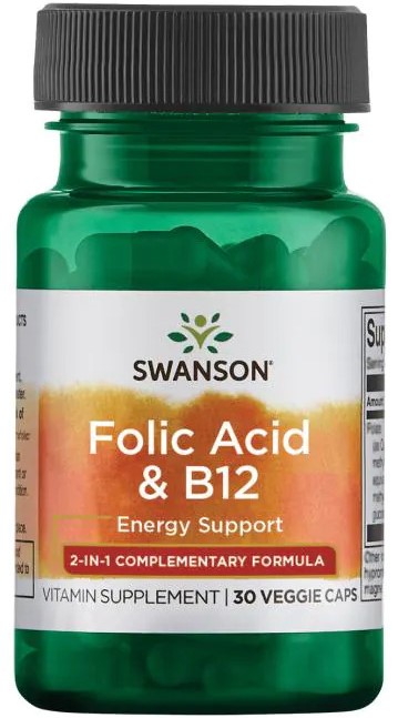 Swanson Folic Acid & B12 30 капсул