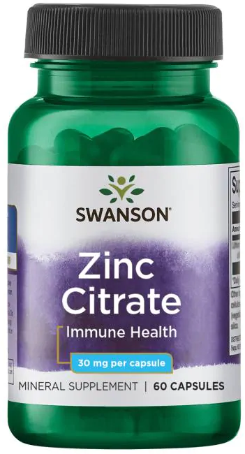 Swanson Zinc Citrate - это пищевая добавка, которая содержит цитрат цинкаЦинк влияет на иммунную систему и играет важную роль в иммунных процессах. Это важно для правильного развития и функционирования нейтрофилов, NK-клеток и макрофагов. Он также влияет на процесс фагоцитоза и выработку цитокинов. Он помогает поддерживать баланс Th1 / Th2 и, таким образом, способствует регулированию иммунного ответа. Также было замечено, что дефицит этого элемента мешает росту и функциям Т- и В-лимфоцитов.